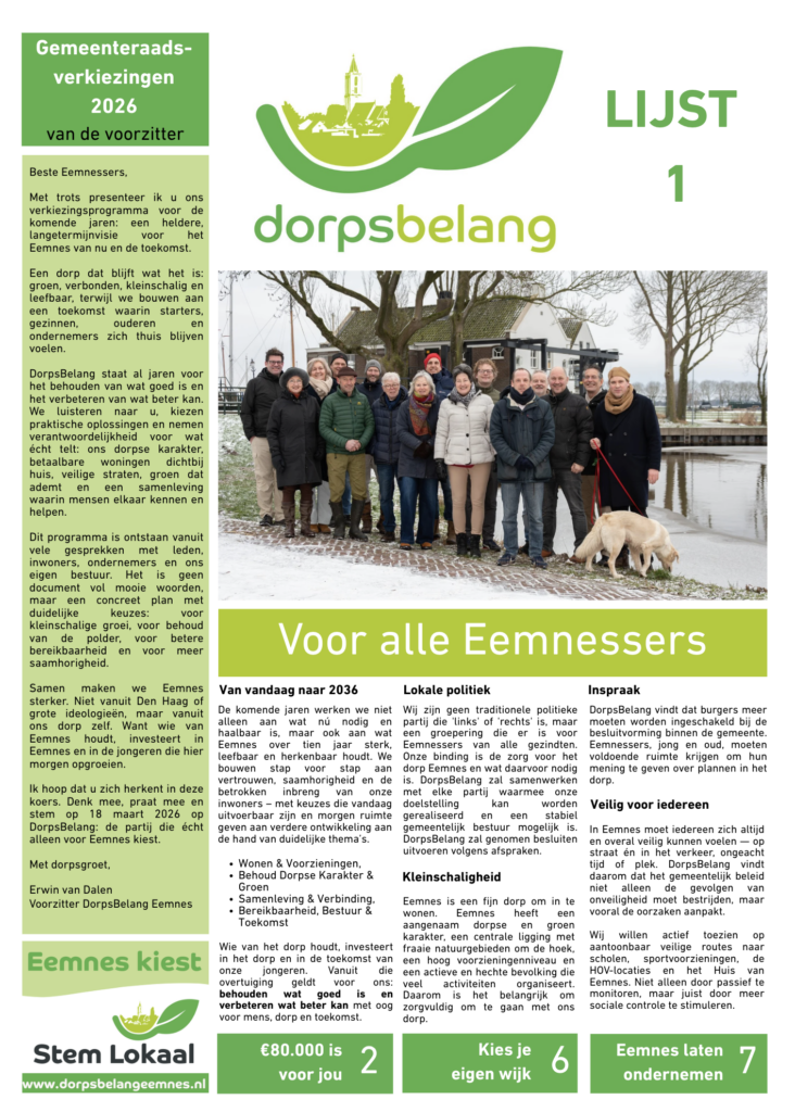Want wij geloven dat goed bestuur verder kijkt dan de korte termijn. Samen als Eemnes staan we sterk.